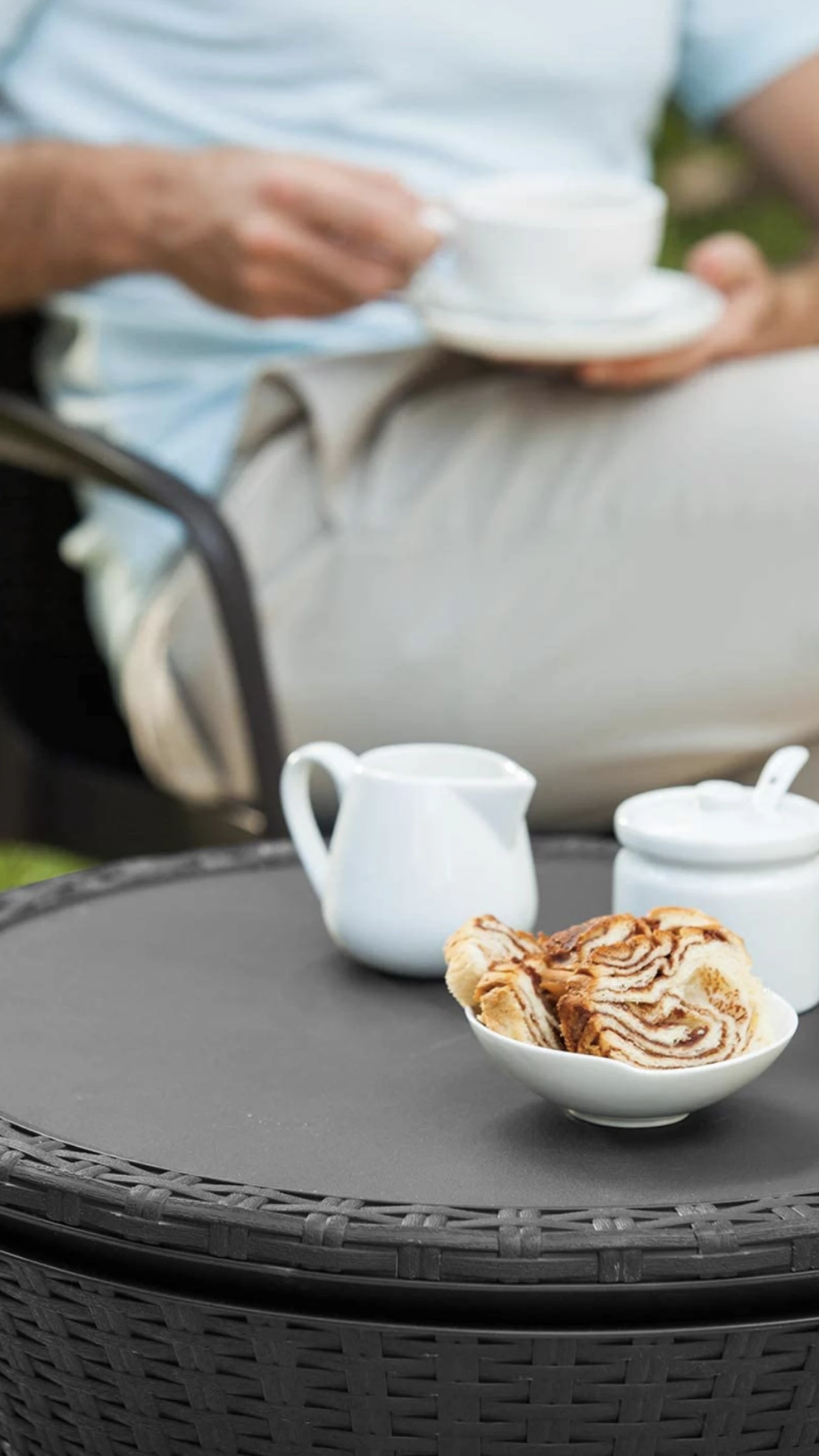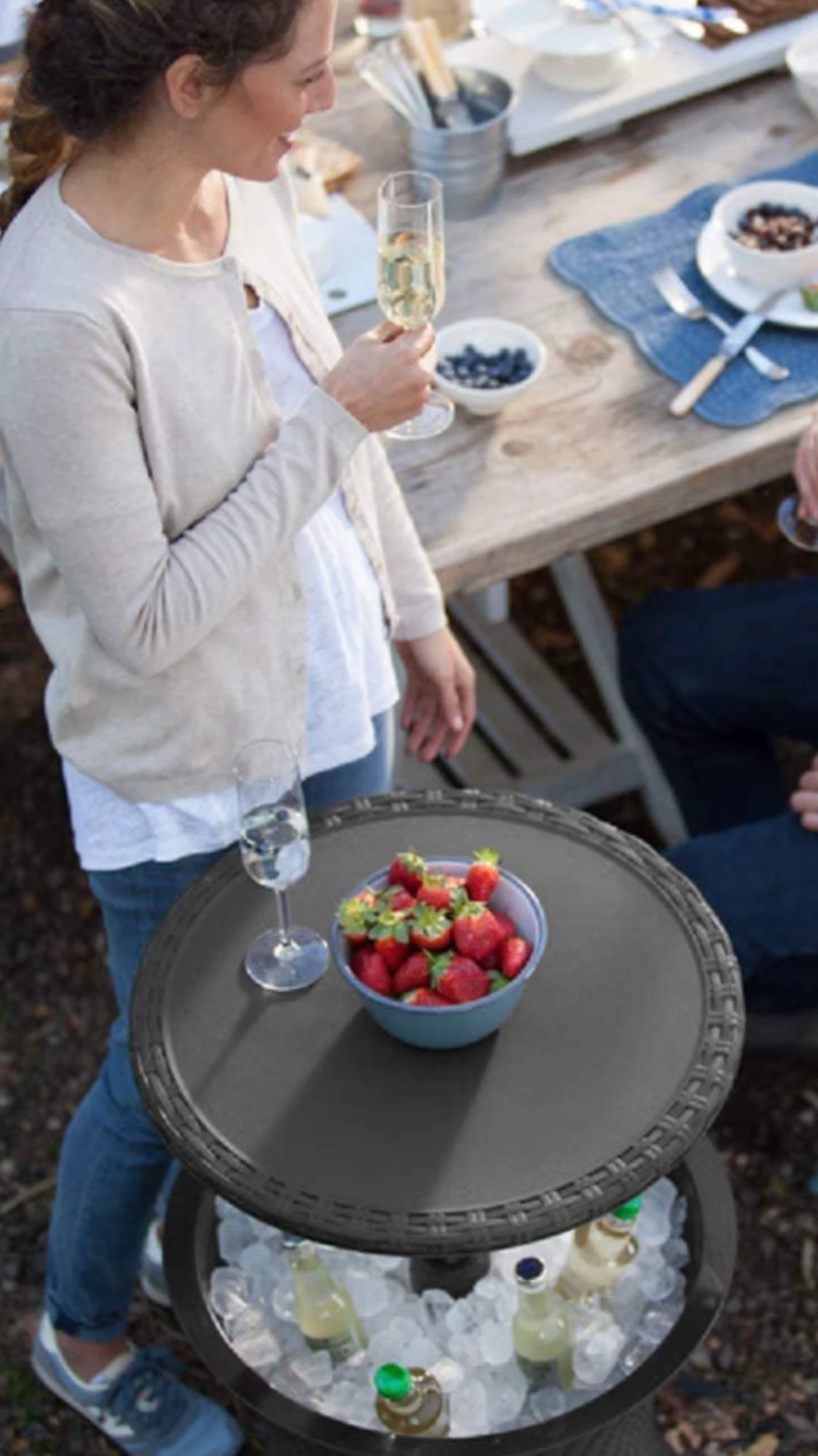 - VERSATILE USE: Use as a patio coffee table, bar table, drink cooler, and raised hot tub table