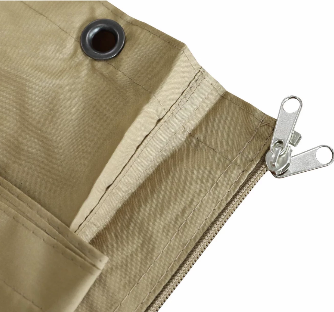 - Four(4) wall enclosures. Grommet Top. Zippers in center of each side allows for easy entry and exit.