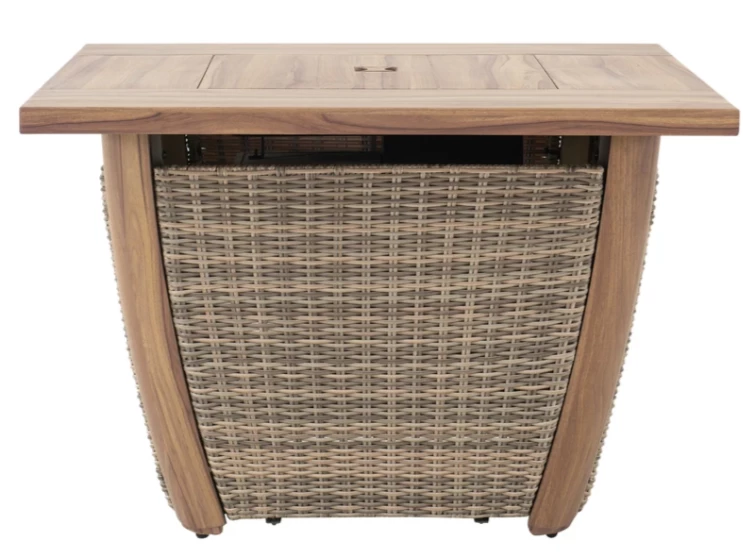 Transform your patio into the ultimate relaxation destination with this outdoor propane-powered firepit from , the world’s leading ready-to-assemble outdoor structure maker. There’s nothing quite like an evening outside around the flickering and cozy fire. Made of a steel table top with nice heat transfer looking, all-weather wicker, and rust-resistant powder-coated steel this transitional design is sure to complement any outdoor space. Adjust the level of fire and heat with a convenient control knob. Conceal your propane tank (tank sold separately) out of the way underneath the firepit. Curl up for a cozy evening under the stars or invite friends and family over for a good conversation. You’ll enjoy this firepit for years to come.