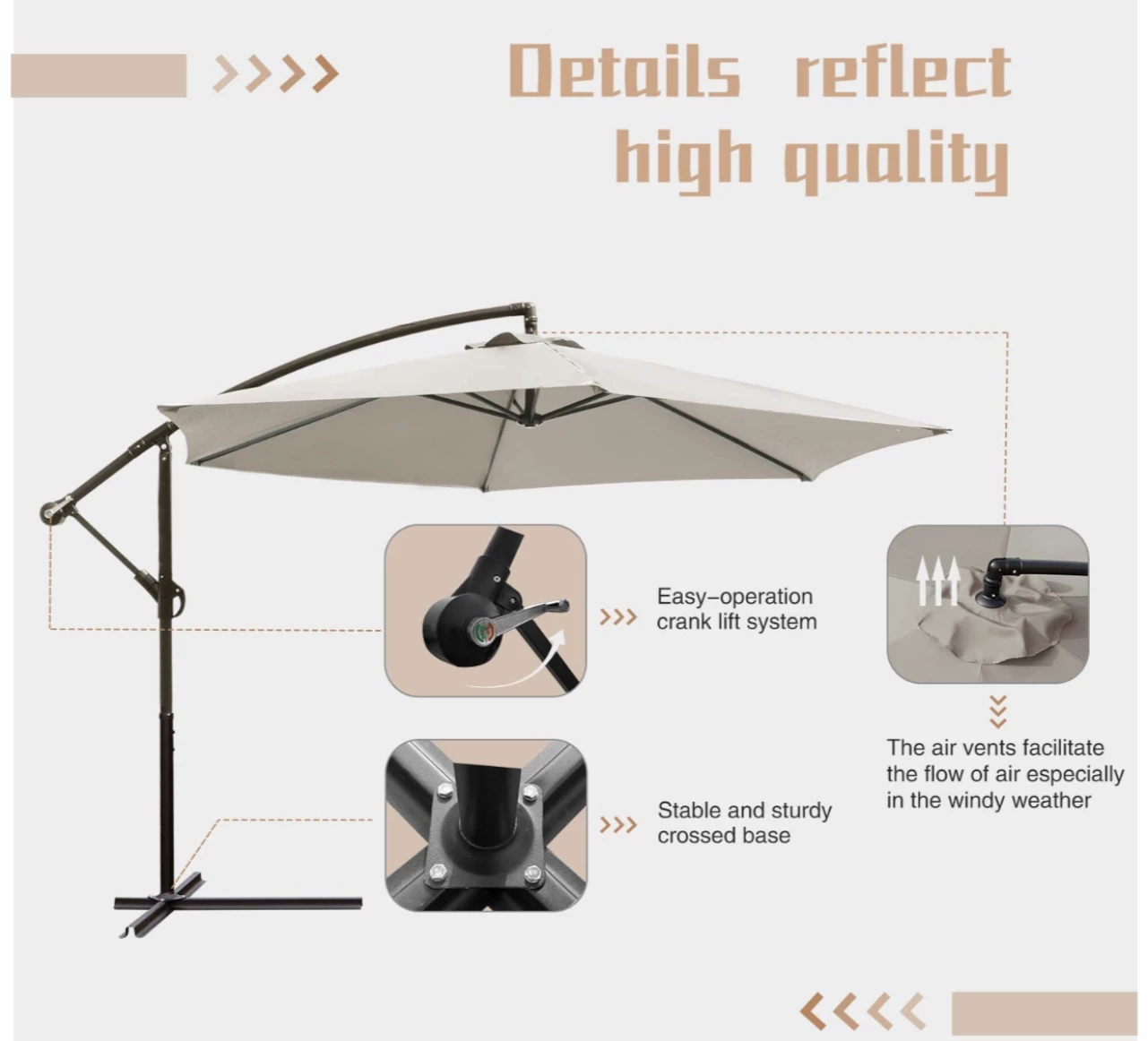- Useful Offset Patio Umbrella: The offset patio umbrella can provide you with a shade and protection that can keep you cool and comfortable outside. And it is also a good choice for restaurants, backyard, garden, beach and other suitable occasion to protect you from UV and rain.