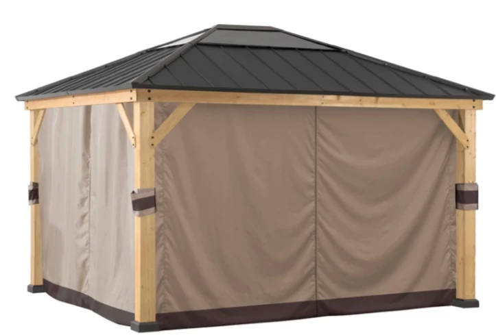Enhance the look and increase functionality of your Sunjoy wood-framed gazebo with weather-resistant curtains. Create a more private setting from prying eyes or block out some unwanted sun. The curtains are easily installed with included ring hardware to the dual curtain/netting rails that are part of select wood gazebos. Curtains and can be closed and secured with quality zippers. When not in use simply use the curtain ties to keep everything neatly contained and out of the way.